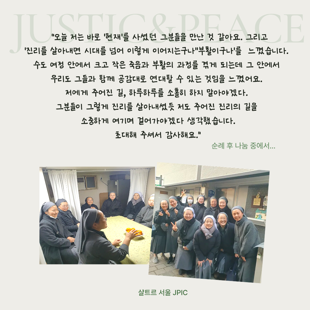 로그인 회원가입 우리는 창설자 / 이삭줍는 애덕의 수녀들 전세계 SPC 한국 설립 양성과정 사도직 선교 교육 의료 사회복지 피정의 집 성 바오로 피정의 집 계성푸른누리수련원 베델의 집 청년사목 밀이삭 성소모임 예.벗. 청년모임 PICK & TALK 바오로 뜨락 역사박물관 바오로 교육관 심리상담실 전례예술원 북방선교회 바오로의 벗 바오로의 벗 수녀원 소식 수녀원 소식 묵상나눔 생명평화 부르심 기도 바구니 자료실 교회소식 찬미의 기도 바오로의 뜨락 125년사 문헌 바오로 자매방