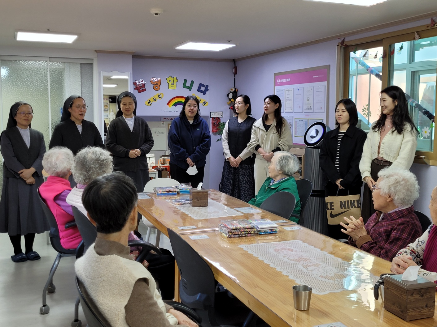 청년 PICK & TALK 사랑의 나눔 1 - 성우회 어르신 방문 2025-12-15 올해 사랑의 나눔, 첫번째로 2025년 12월14일 성우회(양로시설)에 다섯 명의 예벗이 방문했습니다. 예벗의 재능기부로 성탄카드 만들기 재료를 준비, 예벗의 기부금으로 마련한 성탄 목도리를 선물로 준비했습니다. 어르신들과 함께 성탄카드를 만들고 간식을 먹으며 이야기를 나누는 시간, 성탄 목도리를 선물하는 시간, 서로가 서로에게 사랑을 주고 받으며 마음이 풍성해지는 시간이었습니다. 예벗 소개와 인사하기 카드 그림 색칠하기 간식과 차, 이야기 나눔 성탄 목도리 선물 나누기 이전글요한의 '소리'가 전하고자 한 뜻 다음글2025 청년대림피정 이야기 목록