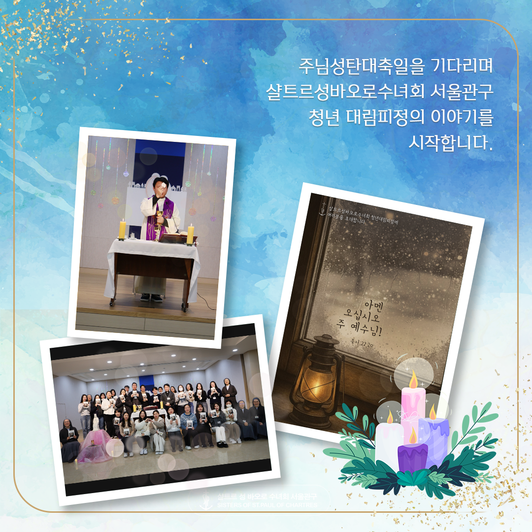 청년 PICK & TALK 2025 청년대림피정 이야기 2025-12-15 지난 13일 토요일 청년 대림 피정 이야기를 나누어 봅니다. 영혼 깊은 곳에 하느님의 말씀을 품고 가신 아름다운 청년들의 거룩한 성탄을 함께 고대하며.... 이전글사랑의 나눔 1 - 성우회 어르신 방문 다음글대림 4주일 목록
