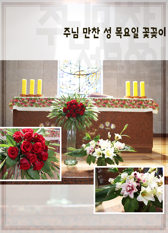 찬미의 기도 2026 주님 만찬 성 목요일 꽃꽂이 2026-04-10 꽃 장미, 겹백합, 백합, 프리지아 소재 보리, 레몬 잎, 소철 이전글2026 주님 성지 주일 꽃꽂이 다음글2026 수난감실 꽃꽂이 목록
